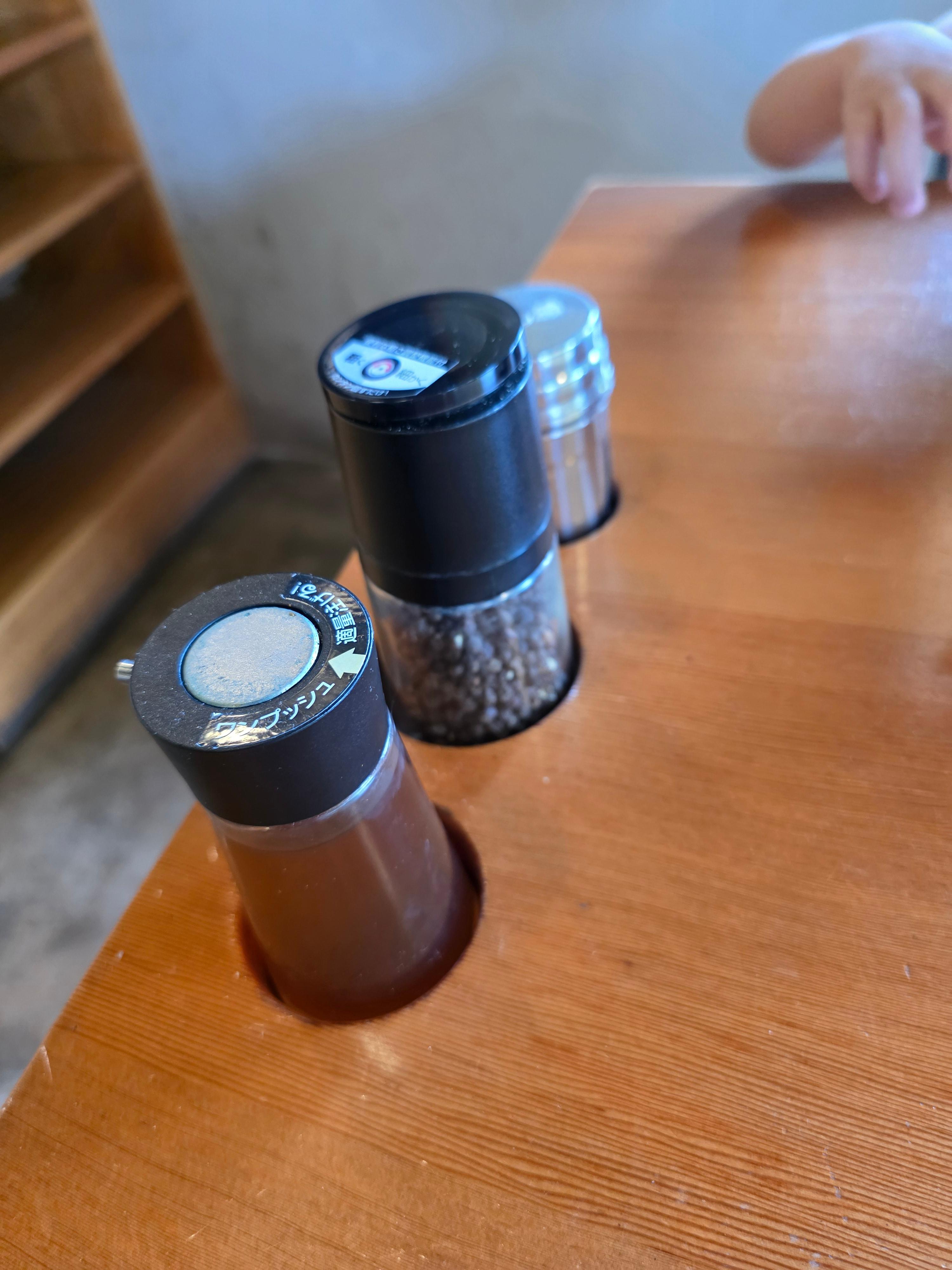 테이블 위로는 양념들이 있어요.