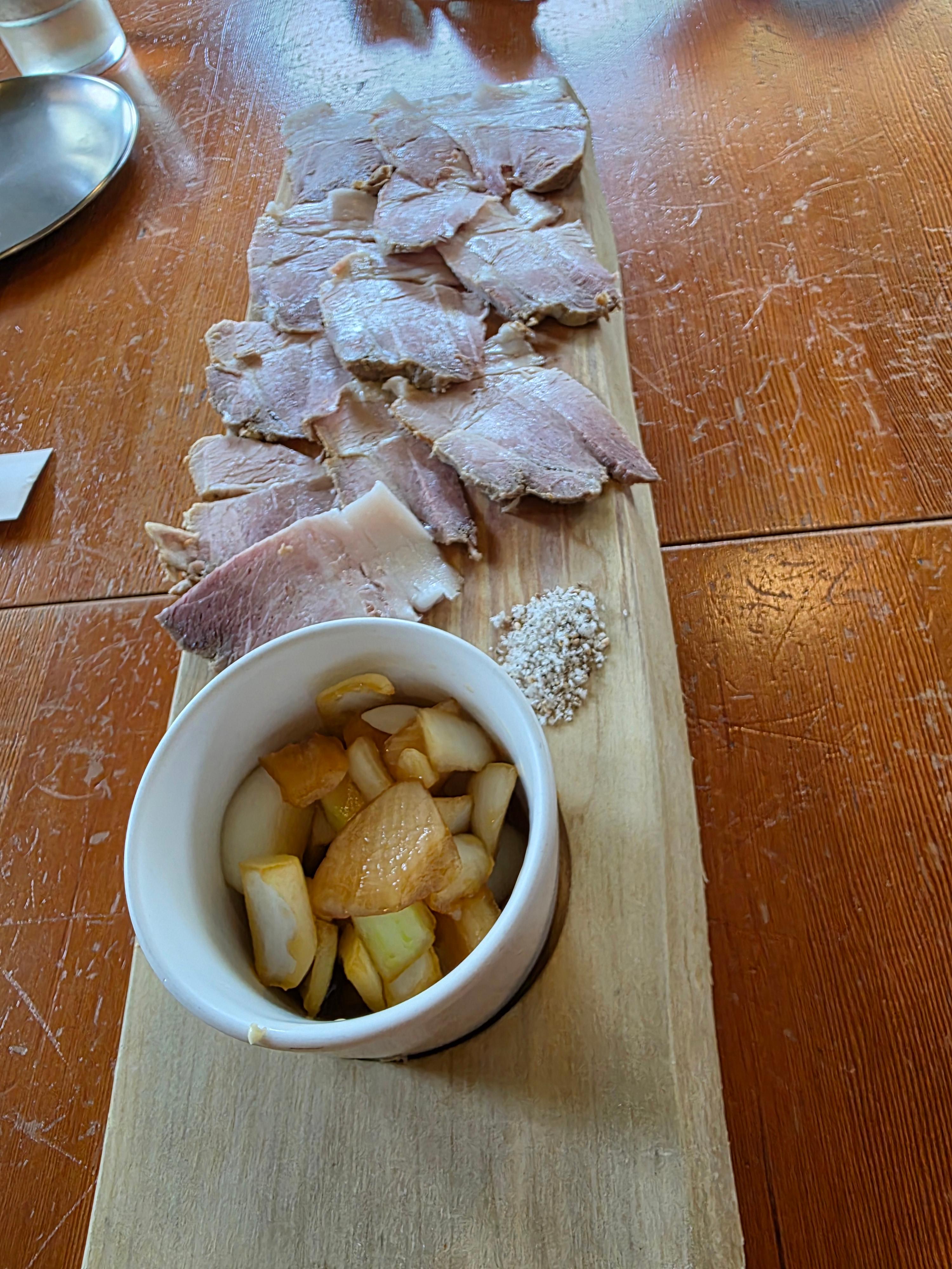 얇게 썰어 저 나온 돔베고기에