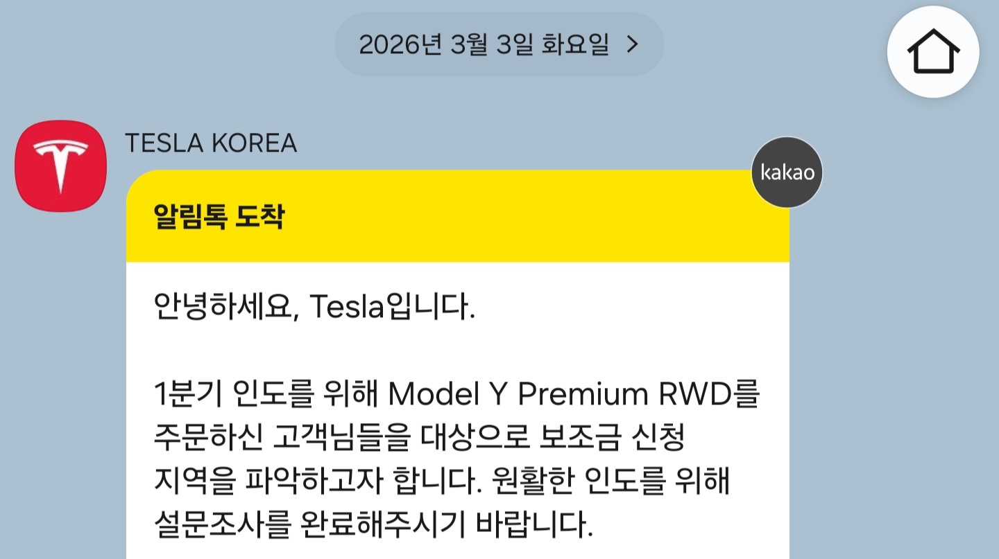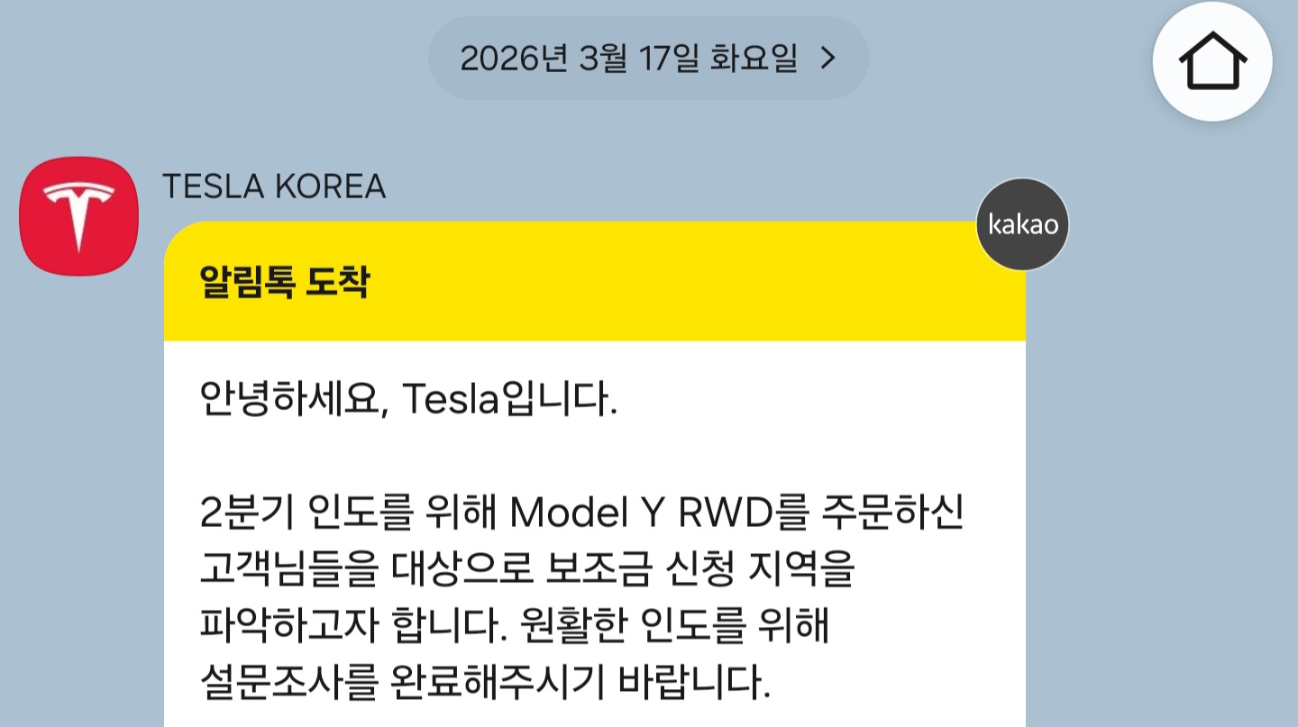 테슬라 코리아로부터 카톡이 옵니다!!